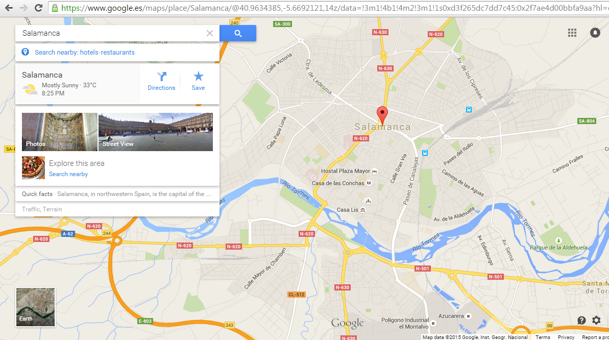 Ante tales condiciones, el espectador encontrar$aacute; una busqueda realizada en google maps con la ciudad de salamanca seleccionada.
